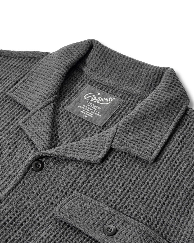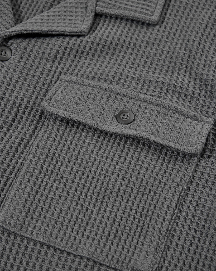 Waffle Button Front Camp Shirt - Charcoal