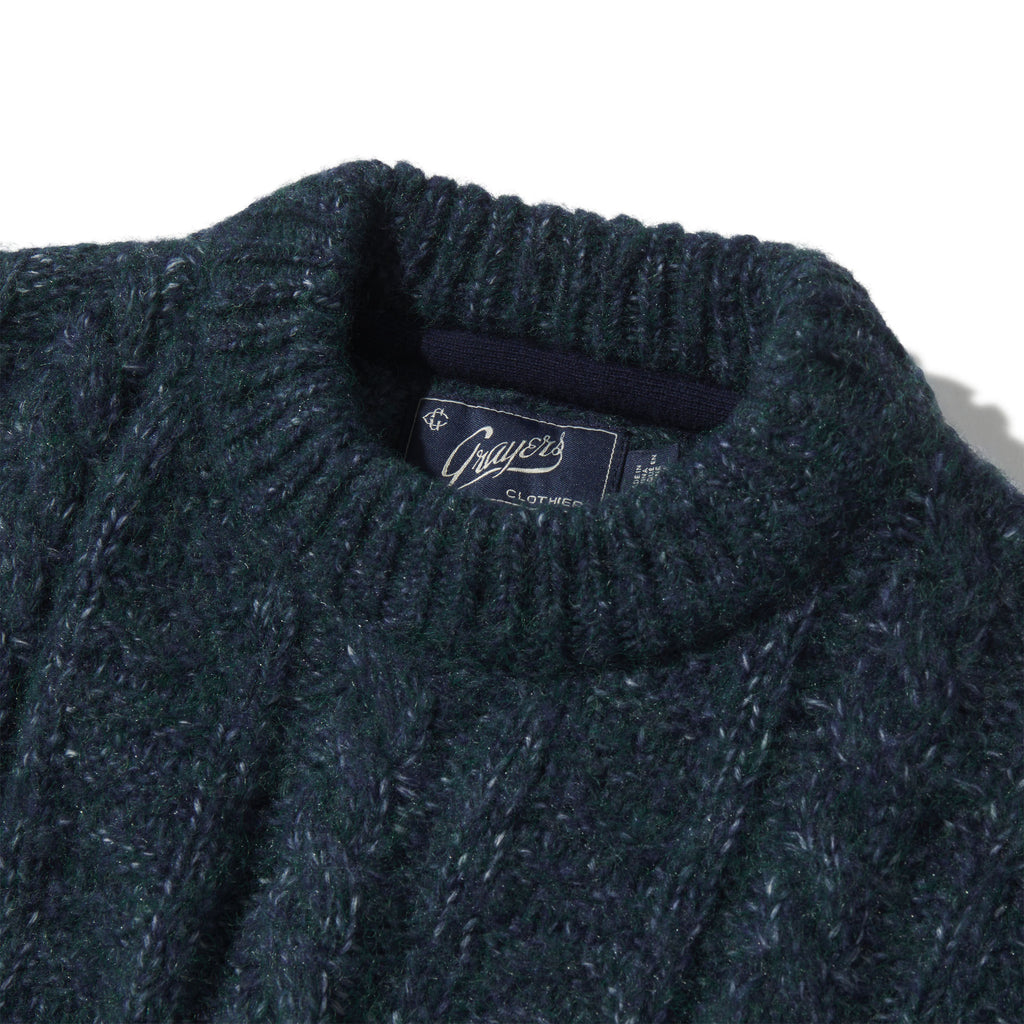 The Ivy League wool sweater was popularized in the 50's and became a part of the collegiate uniform. Our version is a blend of heathered wool in a cable stitch, slightly brushed for an ultra soft hand, knit in a low gauge (big stitch), making it warm and breathable.