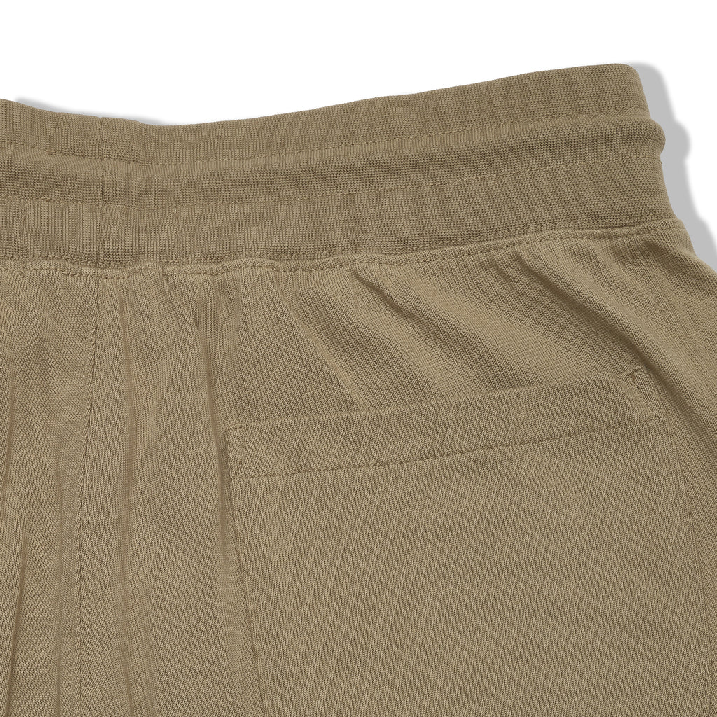 Using compact, tightly knit jersey with premium long staple cotton, we've created a more elevated lounge short. The firmness of the compact fabric gives these shorts more structure while maintains the natural stretch of the knit cloth. Detailed with off-seam side pockets, one rear patch pocket and finished with a firm elasticated waistband with an external drawcord