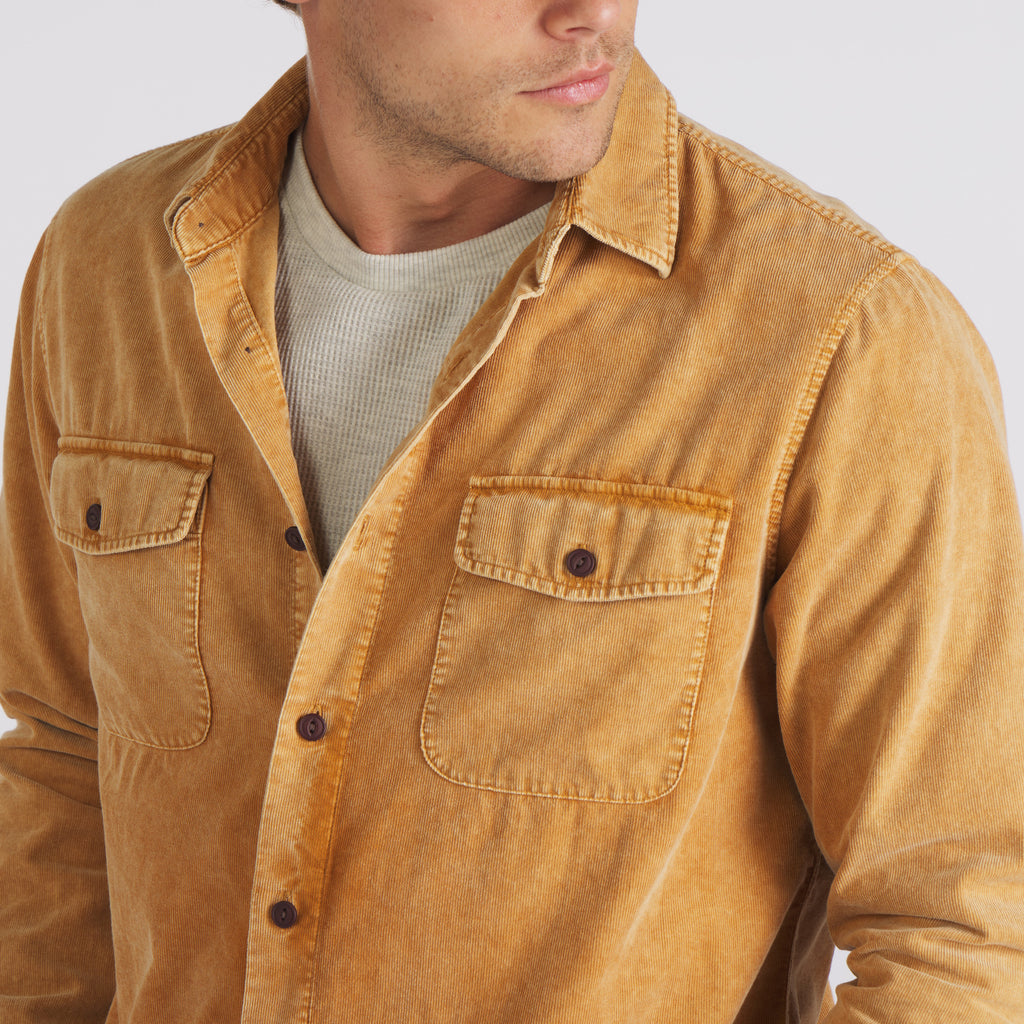 This is the ideal workshirt for the crisp days of fall. So, if you're in search of a shirt that's as rich in character as it is in color, the Jeremiah Vintage Garment Dyed Cord Shirt is your trusted companion for the wild, untamed outdoors.