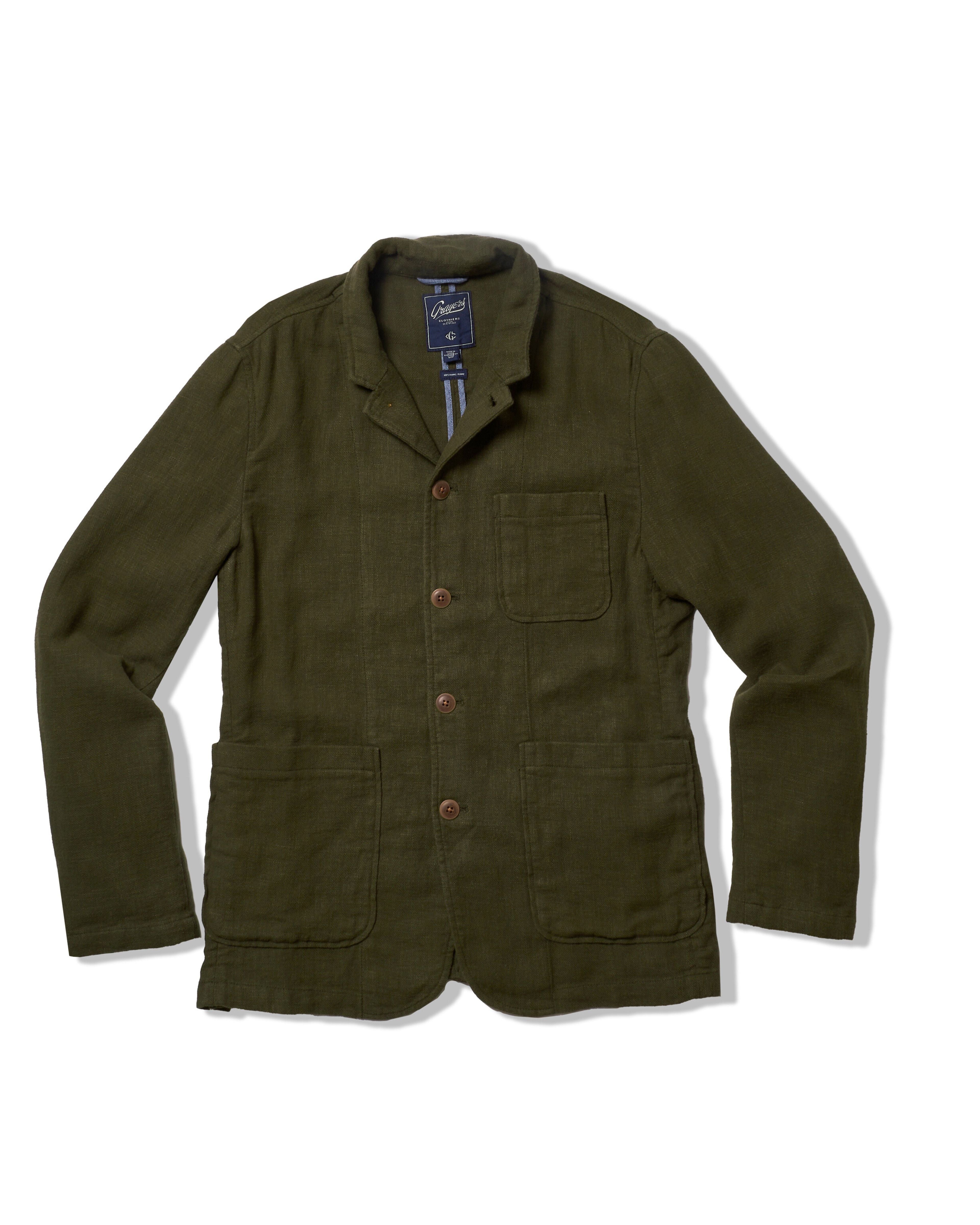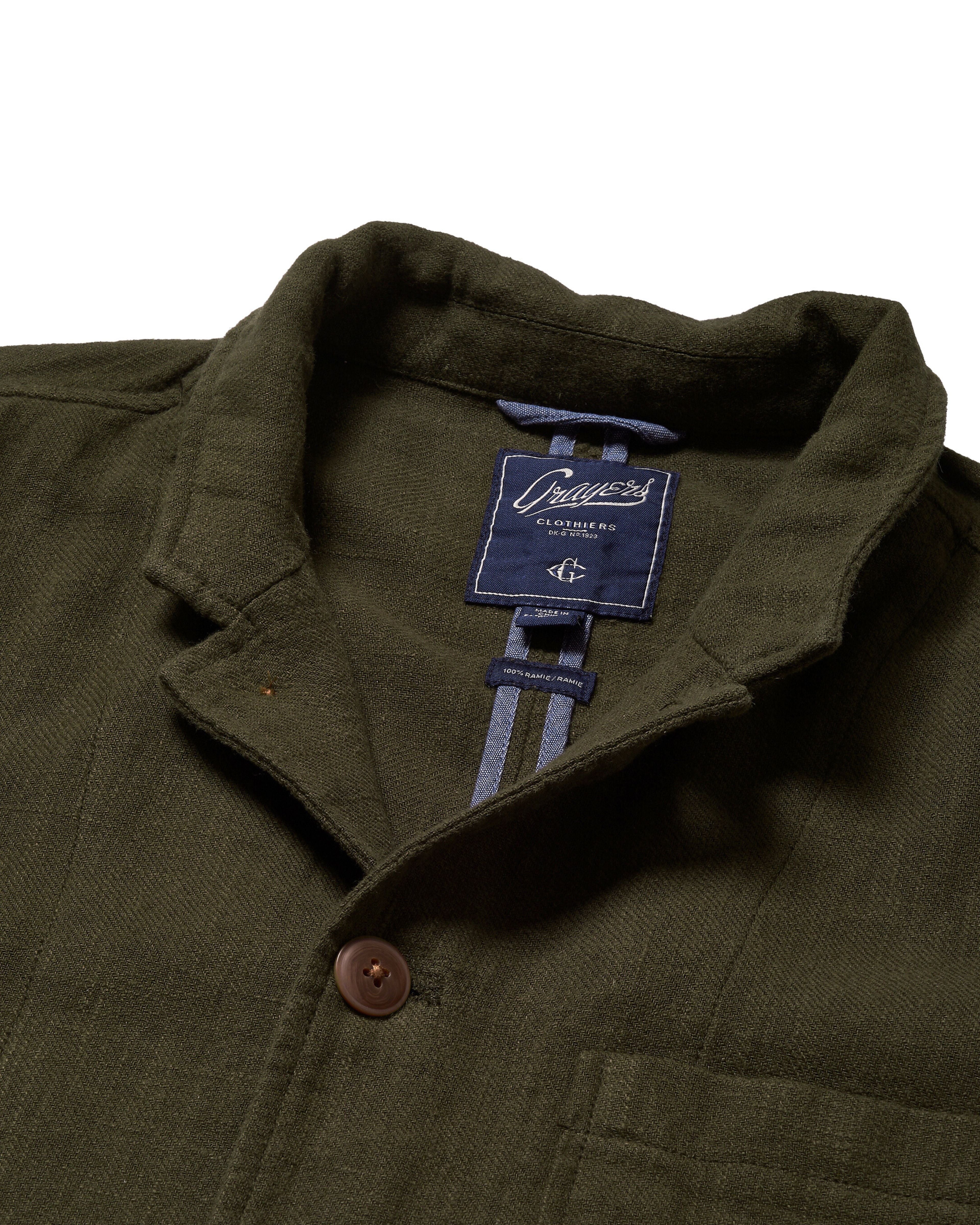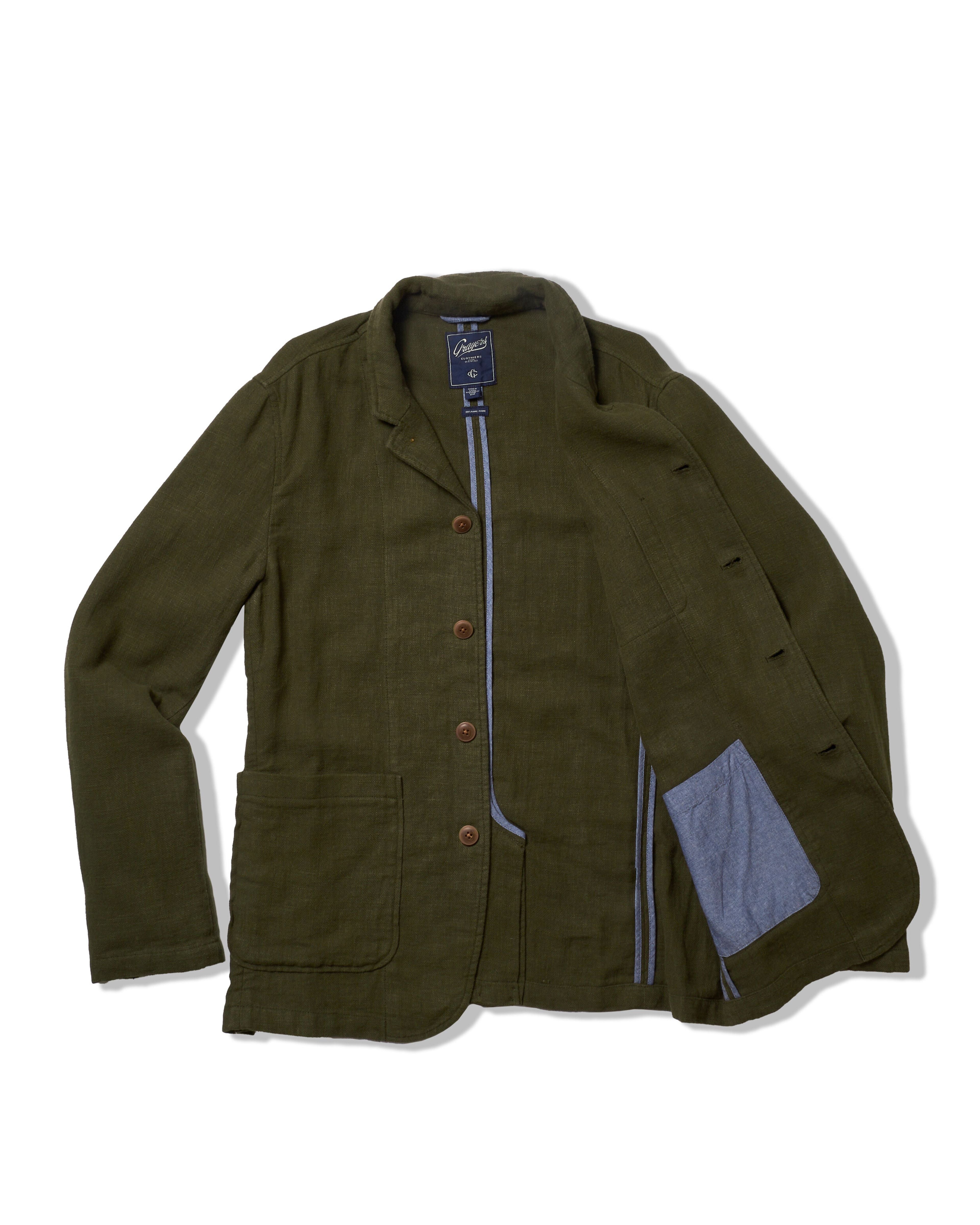 Nelson Ramie Stand Up Collar Blazer - Dark Olive